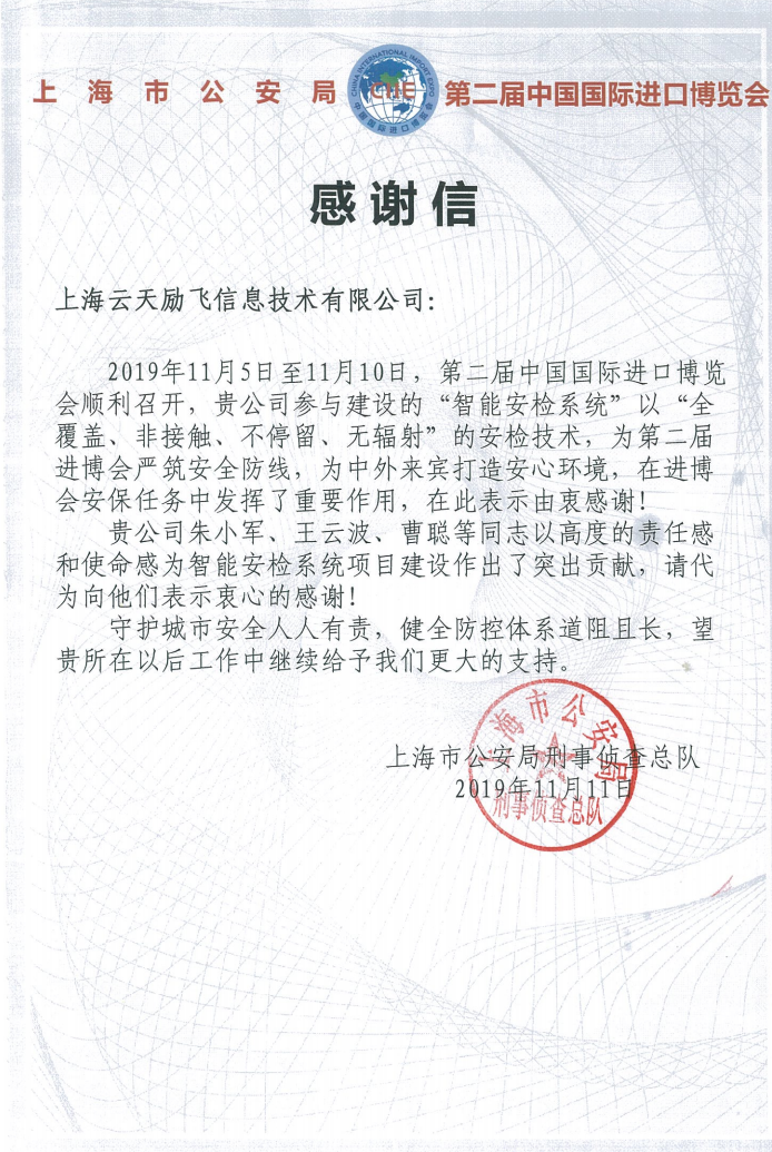 值得一提的是,自2018年首届进博会举办起,yp电子(中国区)连续2年参与建设进博会“智能安检系统”项目,是进博会核心安保圈的动态人像识别技术提供厂商。